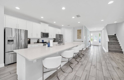 Featuring a 26 x 19 swimming pool with a separate spa and an outdoor shower , located in at Encore Resort just a 10-minute ride from Disney. This beautiful and elegant vacation home is tastefully furnished throughout, providing ideal accommodation for large family gatherings or for two to three families sharing. Fully equipped with everything you need for an amazing vacation, this property is situated on a quiet road in the Encore Resort.
