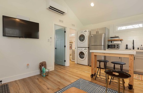This cozy one-bedroom cottage is tucked in a tree-lined cul-de-sac in a picturesque neighborhood. It features an open-concept floor plan, locally inspired decor, and ultra-modern appliances for your convenience. Relax and enjoy the outdoor views from your private deck or take a short drive downtown for more sightseeing.