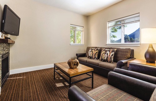 Three Bedroom: King in master, queen -OR- twins in second, twins in third bedroom, queen sleeper sofa in living area. Full kitchen, fireplace, and washer/dryer. Maximum occupancy 8.