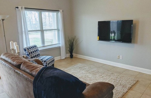Enjoy the drive along the historic Hiwassee river down a picturesque country road to our largest, newly remodeled unit. A complete, stand alone three bedroom two bath home with a full kitchen, two car garage and a back deck looking out into nature. The master and one of the other rooms contain new queen beds for your comfort. The third bedroom has a bunk bed with a full bed on the bottom with a twin bunk on top. A large flat screen TV is ready for your enjoyment in the living room. There is also a fire pit on the porch for your enjoyment! The kitchen has basic needs covered including a Keurig Coffee maker! In case you want to remain at least somewhat connected with the outside world, we made sure to include good quality Internet access!