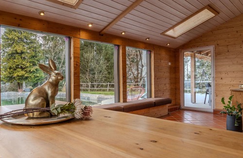 St. Johann am Walde: Beautiful chalet with every comfort! Private swimming pond, hot tub. Modern, comfortable chalet, 2 storeys, surrounded by trees and meadows. In the district of St. Johann am Walde, in a quiet, sunny position, in the countryside. Private: property, lawn for sunbathing, beautiful garden to relax. Hot tub, nat. Swimm. Pond, patio, garden furniture, barbecue. In the house: central heating system, washing machine, tumble dryer. Parking at the house. Carport. Shop 1 km, shopping centre 21 km, restaurant 1 km, bus stop 200 m, bathing lake "Mattsee" 23 km. Golf course (9 hole) 2 km, cross country ski track 1 km. Nearby attractions: Therme Geinberg 21 km, KTM Motohall 13 km, Trumer Privatbrauerei 32 km, Stadt Salzburg 50 km. Well-known ski regions can easily be reached: Skilift Eberschwang 24 km. Well-known lakes can easily be reached: Mattsee 27 km, Grabensee, Obertrumersee 29 km. Hiking paths: ab Haus.