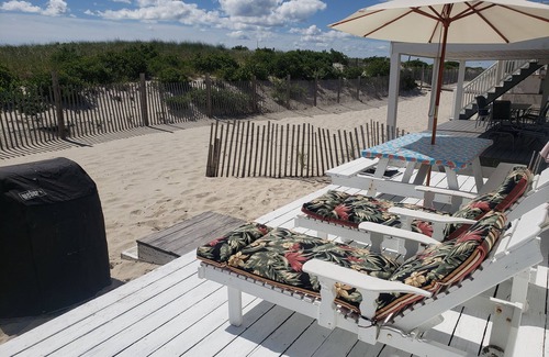 This adorable bungalow is located right on the sand. Beautiful ocean view and bay views from the top deck. Two outdoor showers. Walking distance to bars, restaurants and the bay. Enjoy the beach, walking, biking, fishing, crabbing and much more....Seaside Heights boardwalk is a short 5 minute drive. The entrance to Island Beach State Park is blocks away!