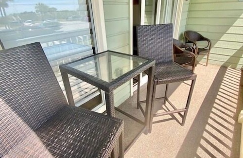 Guest to this property will find the kitchen is fully-equipped—great for making your own dinners at home or grabbing a nutritious snack before heading out to the beach. There's a Keurig coffee maker as well as a three-seater breakfast bar, and all the typical kitchen appliances you'd need, including an elegant wine glass holder! This space flows into the living area, which is furnished with a flat-screen TV, a brand new sofa, and an extra chair. The TV has cable, and the unit has free Wi-Fi, giving you everything you need to stay connected on the go.