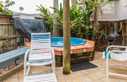 The first floor of each 1490 sqft villa has a full kitchen, dining area, half bath and living room opening to your private, fully fenced tropical garden with hammock, barbecue, and your own private in ground spa.