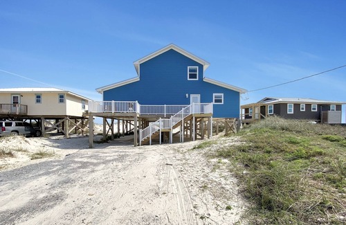 Perfect oceanfront 3 bed/2 bath, with a spacious upstairs loft. "Dune It Well", located in Fort Morgan, AL, has been recently updated to accommodate up to 12 guests. The master bedroom has a dedicated bathroom, king bed, and oceanfront view. The guest bedroom also has an oceanfront view with a king bed. The living room sits in the middle of the two "master bedrooms", and all share an oversized deck that overlooks the ocean. The deck is surrounded by white sand and is very spacious with plenty of room to take in the ocean breeze and enjoy the sun. Stairs from the deck will lead you to the waters edge that you'll discover is the perfect distance from your beach house. The 3rd bedroom has newly built in bunk beds, a full over full bunk and a twin over twin bunk. The living room has an open feel to it because of the large windows and 25 foot ceiling that also covers the upstairs loft. The picture windows and patio door provide a beautiful view of the water and it gives you the opportunity to keep an eye on the little ones while sitting indoors. The loft allows more space to spread out and it contains a queen size bed and futon as well. The home has five tv's, two of which are brand new smart tv's, so streaming video through netflix, hulu, or amazon is easy, just remember to log out prior to your departure. The location of this property is ideal, as it is under a mile to the nearest restaurant/bar, Tacky Jacks 2, easily within walking distance. Fort Morgan is 2.5 miles away, Mobile Ferry is 2.1 miles, and Sassy Bass restaurant/grocery store is 3.2 miles, Kiva Dunes Golf Course is 6.4 miles, and Gulf Shores is about a 25 minute drive, just to name a few. Under the house is unique in that the surrounding sand dunes offer protection from the sun and wind. the large concrete decking underneath is a perfect area for kids to ride scooters while the adults enjoy the shade. I believe you'll make some great memories here at "Dune It Well". We typically only book from Saturday to Saturday. Also, We highly recommend purchasing Travel Protection offered by vrbo through vacationprotection.com