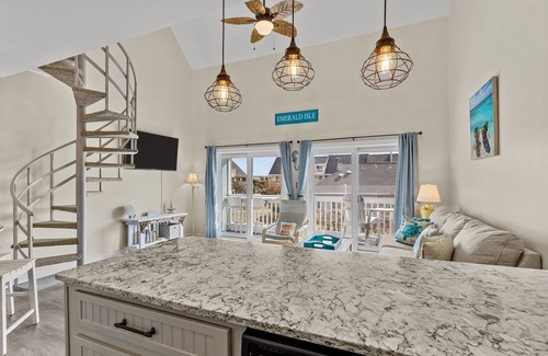 This newly renovated top to bottom, 2 bedroom 2 bath, second floor condo has an open floor plan and many updates! The main bedroom has vaulted ceilings, a queen bed and a twin daybed. A spiral staircase leads you up to the second bedroom loft with vaulted ceilings, a king bed, a full/double bed and a full attached bath.