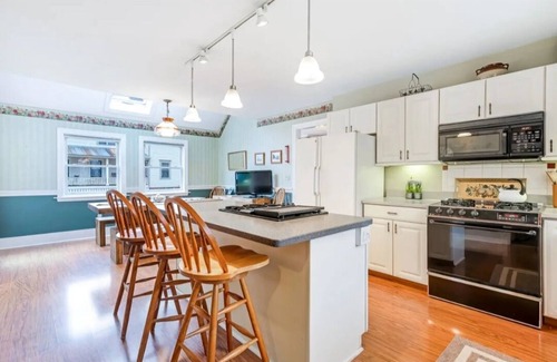 Impecable village Victorian know as the Parker House to the locals has been renovated from top to bottom. Walk into the grandeur of 9-foot ceilings, crown molding, rosette hardwood trim and handcrafted natural wood front staircase. Into the dining area, you'll find hardwood floors, detailed chairs rails and the Baby Grand in one of the many turret rooms. The eat-in kitchen is fit for any chef, with radiant heat, propane cooking on the island Jenn store everything needed for your gourmet meals.