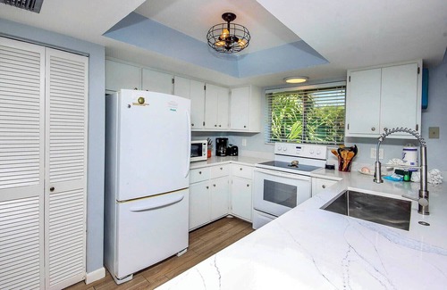 Life doesn't get much better than staying for a week or longer at "On a Whim". Our newly renovated Captiva Island cottage is located in the Village area of Captiva, just a short walk to the beach, bay, shops, and restaurants. We are located on a quiet street called Mango Ct. There is a ground-level area with seating to relax and enjoy a meal in the fresh air. The inside of the home has been completely renovated with new furniture, flooring, paint, and much more. There is a spacious living area with a flat panel TV, a dining area, and a full kitchen. An open deck stretches from the living area to the master bedroom, and a screened lanai area with seating is just off the living room. The master bedroom has a king-sized bed and en-suite bathroom, while the guest bedroom features a queen-sized bed and full bathroom just across the hall. There is a queen-sized sleeper sofa in the living room for additional guests. We look forward to welcoming you to "On a Whim" very soon! One small dog may be considered with owner approval and an additional non-refundable pet fee.