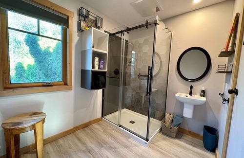 The bathroom is beautifully finished and features a generous walk-in shower—bringing a touch of spa-like comfort to your daily routine. And after a long day on the slopes, why not take a leisurely walk to town and treat yourself at one of Rossland’s many fantastic restaurants?