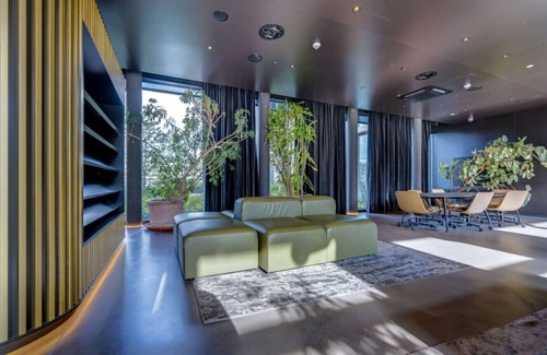 Ein Hauch von Glamour empfängt dich, sobald du das Gebäude betrittst. Die Lobby ist in entspannendes, gedämpftes Licht getaucht und kontrastiert mit den schimmernden goldenen Elementen in der Eingangshalle. Der offene Bereich im Erdgeschoss bietet eine Entspannungszone, in der du dich mit anderen Personen die neu in Zürich sind, treffen und austauschen kannst.
