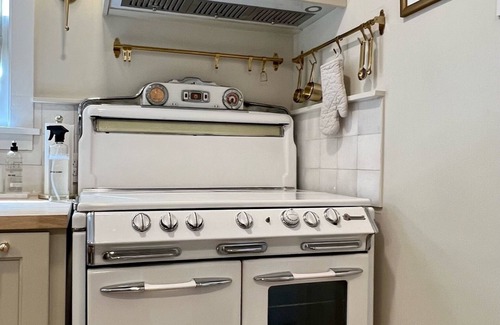 Full of early 1900s character, staying here is an experience enjoyed by all. The open and central kitchen is both convenient and inviting, the outdoor spaces expand the living space, and the location is ideal for experiencing downtown Ojai. We can guarantee you will be cozy in the cottage and have everything you need to move right in and work, exercise, entertain, or relax. We provide what you need to get settled and have anything you need in the back house- just ask! Features include keyless entry, high-speed internet, a smart TV, a Peloton, a bathtub, and dozens of appliances you didn't know you needed. We cover all utilities and offer medium-term, flexible stays over 31 days per Ojai law.