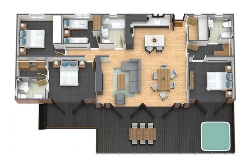Outstanding bespoke spacious lodge, brand new in 2023, offering 1200 square foot internal space perfect for larger families and groups with four bedrooms. These superb lodges offer a central living area design offering a master bedroom suite on one side of the lodge incorporating a large king-sized bed, walk-in wardrobe and ensuite facilities. This bedroom suite also has double patio doors leading out onto the outdoor decking area, perfect for taking a quick dip into the hot tub first thing in the morning. The second double bedroom also offers en-suite facilities and double patio doors leading onto the decked area. In addition, there are two further bedrooms (double and twin) with a family bathroom incorporating a bath and an integral shower. The spacious central open plan living area features a high spec kitchen with island breakfast bar, dining table and lounge with contemporary furnishings incorporating a stylish media wall offering a great range of live television and streaming services. The two double patio doors allow natural light to flood in, both of which open out onto your private decked area with bubbling hot tub and outdoor furniture to relax and take in the peaceful surroundings. All lodges offer a garden area providing seclusion and sense of privacy from neighbours. Pets welcome (max two).. Forest Hills Lodges is an outstanding new addition to our Evermore Lodge Holidays Collection for 2023. Nestled within the Forest of Dean area, on the edge of the forest itself, you will find a collection of handcrafted, bespoke built lodges designed with the discerning holiday guest in mind. Overlooking an established parkland golf course yet only a short walk from the forest, this highly desirable location offers the perfect lodge retreat for couples, friends, and families alike.
