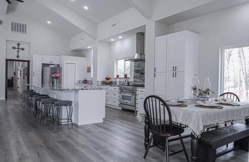 It is a 30 minute drive to Branson, MO, where you can attend live shows, restaurants, or shopping. The home has a full gourmet kitchen, an island that seats 9, plus a large dining table both inside and outside on the patio.