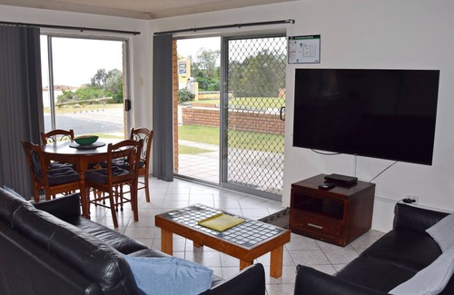 Just a short walk through the park and onto the beach—this is as close to the beach as you can get! This ground-floor two-bedroom beachfront unit offers beautiful views of Trial Bay and is the perfect spot for a relaxing beach holiday.