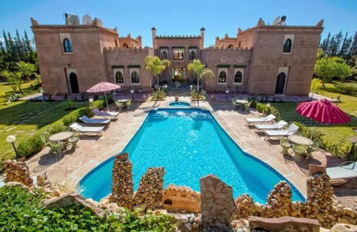 Nestled in the charming town of Sidi Abdellah Ghiat, just 16 kilometers from the vibrant city of Marrakech, lies an exquisite palace with two luxurious villas and two magnificent swimming pools. This palatial estate invites guests to indulge in a unique and memorable experience, surrounded by a splendid garden and a plethora of entertainment options. The vast garden, meticulously landscaped with a variety of flora, provides a serene and picturesque setting, perfect for leisurely strolls or simply relaxing and soaking in the tranquil ambiance.