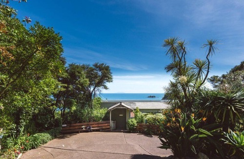 Little Barrier Island is visible on the horizon, the islands of the ‘Noises’ and ‘Tiri Tiri Matangi’ are to the left, Nani Island to the right and in the foreground Palm Beach is invitingly close with the sound of the sea ever present.