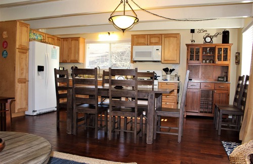 Par-Four Paradise is located in the private gated community of Pine Mountain Lake in Groveland, California, offering accommodations for 8 people. On the main floor, enjoy a fully stocked kitchen, dining area, 2 bedrooms, (one King & one queen beds) and a full bathroom. The Upstairs boasts a large bedroom (1 queen & 2 twin beds), and another full bathroom. A spacious kid-friendly loft equipped with a TV, DVD player & movies, is ideal for board games and puzzles. Free WiFi is included.