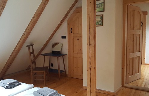 The 70 m² room has a double bed, a dining area, a seating area and a fully equipped kitchen. The bathroom is adjacent. The view, including the Sokolik Mountains, of this apartment is absolutely beautiful as it is located at the front of the house. The house is furnished with a great sense of style and atmosphere. There is plenty of space around the house to relax and enjoy the beautiful nature and tranquility.