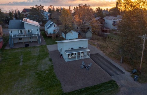 Escape to this gorgeous Park Point getaway! This stunning home is located on the shores of Lake Superior and the Duluth, Minnesota Seaport. Come watch the Lakers go by in the bay with wide views of the sunset on Duluth`s hillside, just steps away from the longest sandbar beach in the world.