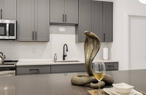 Your Birmingham getaway starts here—in a stylish 2BR/2BA condo with all the comforts of home. Cook with ease in the upgraded kitchen featuring quartz countertops and soft-close cabinetry, stay organized with oversized closets, and relax in spaces designed with plush carpet, ceiling fans, and a Nest thermostat. Unwind on the private balcony with city views or take a dip in the saltwater pool for a resort-style experience. The building offers co-working areas, a complimentary coffee bar, and a sky lounge with panoramic views of Regions Park. Extra perks include a fitness center, pet spa, EV charging stations, and bike storage, plus smart conveniences like keyless entry, USB outlets, and sound-proofed cabinets. One secure garage spot (6’8” clearance) comes with your stay, while extra vehicles can be parked nearby on the street.