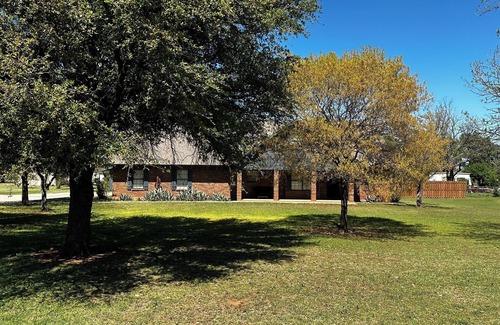 Located just south of Abilene you will find this large, 3200 square foot, 2 story country home on 2+ acres with a beautiful pool! Open floor plan allows for everyone to easily spend time together. 5 bedrooms with different configurations can sleep at least 11 guests (more if you want to use the included air mattress or 4 couches) and the 3.5 bathrooms are easily shared. This home features a well stocked kitchen, coffee bar with drip coffee maker and a Keurig, laundry room with full size washer and dryer, dining room, and living room along with a second living area that is a media room, plus a back patio and pool area that allow for ample outdoor living! The attached 2 car garage can also be utilized for guest parking or storage of items during your stay. You can relax in the back yard and watch the cows graze in the field behind us, or enjoy the occasional fly over by our Dyess Air Force Base B-1s and C-130's. The privacy of the backyard will make you feel like you are a million miles from everything! But you are still only minutes away from everything that Abilene has to offer, or you can easily head south to Buffalo Gap and enjoy one of Perini's famous steaks.