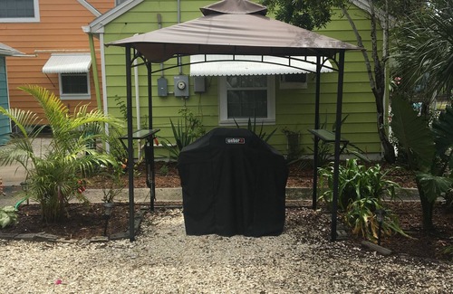All of the shops, restaurants and Gulfport's beach are within a short walk of this cottage. This cottage has a lovely front porch for enjoying the Key West style atmosphere. We have a couple of bicycles at the property for guests to use to ride around town. There is also a large courtyard with a gazebo and gas grille for the enjoyment of guests.