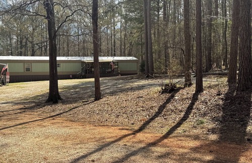 Your home away from home is located on 5 acres in West Point, GA. It is located near the Kia Manufacturing plant and 2 miles off if Interstate 85. It is 5 miles to West Point Lake and 10 miles to LaGrange, GA. It has 3 bedrooms and 2 Full bathrooms. This home features 2 queen beds and 1 full bed, perfect for a comfortable stay. With amenities like heating, AC, and an iron, guests will feel right at home. The 2 bathrooms come equipped with a hairdryer and shower for added convenience. Also, a huge back deck with grill and a quaint rocking chair front porch.