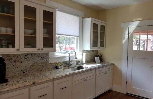 Perfect location for your getaway! 2 King Bedrooms with 2 On-Suite Baths. Enjoy the views and wildlife from the porch in the mornings (deer, birds, butterflies), and the epic sunsets and stars from the hot tub or fire pit in the evenings, while still being close to the shopping, restaurants and nightlife in town. Fully renovated and comfortably furnished, this open concept 2Bd/2Bth 1930's farmhouse sits on 5 acres in the center of it all. This red door darling is 3 miles from Main to the right (west) and 3 miles from the wineries on 290 to the left (east) and has fully equipped kitchen and a comfy living space with everything you need to enjoy a relaxing stay. House and grounds are pet-friendly but not child-friendly so kiddo's must be 15 yrs or older. FYI: Because of the rural location driveway cameras are in use to assist us with guest arrivals and departures.