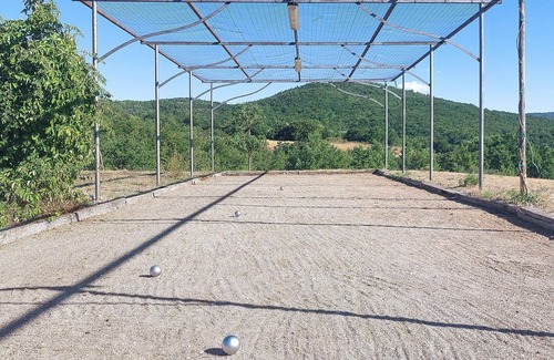 Characteristic 17th century stone house divided into 6 apartments (including IUP579 and IUP581) and dépendance (IUP772), about 80 m away. The houses are located on a 150 ha estate on a hill (480 m.a.s.l.) and is surrounded by meadows and woods. Beautiful view of the valley and the forest. In the surrounding meadow with olive grove is the swimming pool, equipped terrace and stone barbecue for communal use. Sale of organic olive oil DOP. Access by 1 km of gravel road. Baby cribs available on request. Interior. 1st floor: from the large equipped panoramic terrace access to the two almost identical apartments connected by an internal door. Each apartment consists of: Living/dining room with kitchenette and double sofa bed, 1 double bedroom. One apartment has a shower room, the other a bathroom with bathtub. This vacation accommodation is also suitable for two families who, on the one hand, want privacy, but at the same time appreciate a shared terrace. Distances: San Vito in Monte (restaurant) 1.5 km, San Venanzo (stores of all kinds) 12 km, Todi and Perugia 36 km, Orvieto 38 km, Assisi 45 km. Included in the price: Internet connection in the common room. IUP579: the bathroom has no window.