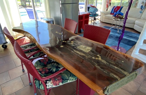 Imagine waking up in the midst of Ocala's horse country, hearing the birds, watching nearby ponies, and having your coffee poolside, steps from the centuries-old oak tree. No neighbors. Your own parking space and walkway. This is a special hideaway for two, just 20 minutes from downtown Ocala and 30 from Gainesville and University of Florida. Architect designed, spiral staircase leads to spacious loft bedroom with queen bed, sitting area, and library; windows overlook horses, meadows, trees. Ground floor has glass walls on three sides with full-length drapes for complete privacy. open concept living/dining room with compact kitchenette is perfect for relaxing and meals. High speed internet, TV. Poolside patio includes BBQ grill, glass table and chairs. Kidney shaped pool surrounded with palms is fenced and pet friendly. Grassed dog yard is accessible from dining room, plus you can walk for miles on the surrounding streets and farm lanes. Perfect for relaxing and letting your worries slide away.