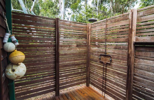 Two large covered decks both north facing. Features: 4 bedrooms (2 Qns, 2 x singles, linen supplied and beds made on arrival), 2 bathrooms, 2 Colour TVs, DVD, Stereo, Dishwasher, Microwave, Fireplace, Gas BBQ on Deck, Auto Washing Machine, Dryer, Ceiling Fans throughout, fully screened, outdoor shower.