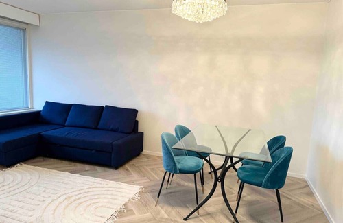 Warm welcome to totally renovated spacious apartment on the highest floor. This apartment has one large bedroom and a spacious living room connected to balcony towards the evening sun. Kitchen is beautiful and well equipped. Apartment has plenty of storage space and comfortable furniture. Apartment has a playing ground in the inner yard. You can enjoy fast wifi as well as have access to own parking. Supermarket is only few steps away as well as bus stop with direct connection to Helsinki center.