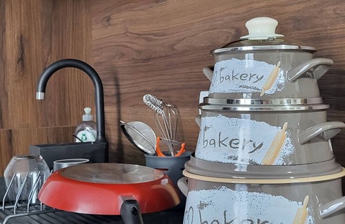 - **Kitchen**: A fully equipped kitchen with everything you need, including an oven, flat-top stove, refrigerator, silverware, glasses, plates, pots, and a kettle.