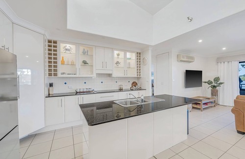 Each bedroom is a retreat, offering plush bedding, soothing décor and plenty of natural light creating calming spaces for relaxing at the end of a busy day. Master bedroom boasts a king bed, walk in robe, ensuite, water views and direct access to the balcony. Bedroom two consists of a Queen bed and bedroom three has two king singles. All Linen Included.