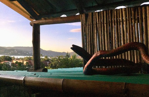 Bambu Treehouse is one of the only house rentals in playa la ropa zihuatanejo that is one with nature experiencing the outdoors inside. The birds land in the trees next to the house.