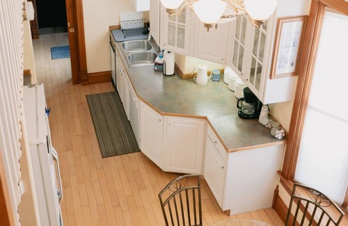 One of our 4 cottages at First Deadwood Cottages. This one is a home away from home. It has a full kitchen so you can prepare your favorite meals. A living room and dining area. An upstairs sleeping loft with 2 twin beds and a private king bedroom. There is also a sleeping area down stairs with 2 queen beds. It is divided by a pocket door with another unit. Don’t forget the BBQ Kitchen area and hot tub outside. It's a great place to stay when you are touring the beautiful Black Hills!