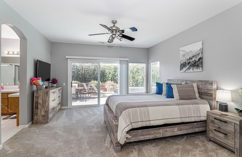 You will all sleep well as each bedroom has a new queen sized bed with memory foam mattresses. Each room has plenty of closet space and their own 50" Smart TV for those who like to watch a movie or good show before bedtime.