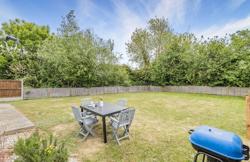 Large, enclosed back garden with table and chairs and charcoal BBQ; large front garden (not enclosed)