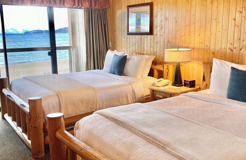 Enjoy a lakefront stay in South Lake Tahoe with direct beach access and mountain views. Located minutes from Heavenly Mountain Resort, this hotel-style lodge offers a pool, spa, and convenient access to skiing, hiking, and scenic attractions like the Aerial Tramway. Ideal for couples, families, and year-round getaways.
