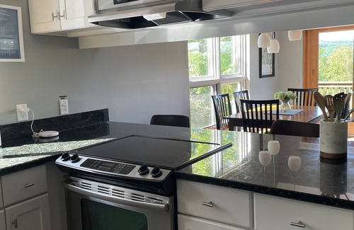 It is the perfect place to call home after a day of skiing, kayaking or hiking. Relaxing on the deck with a glass of wine and enjoy stunning views, will help you to be in a peaceful state of mind throughout your stay. Watch TV, play games, or create a meal in the very well equipped kitchen; whatever you decide, you are sure to love the location, views, and spaciousness of this house.