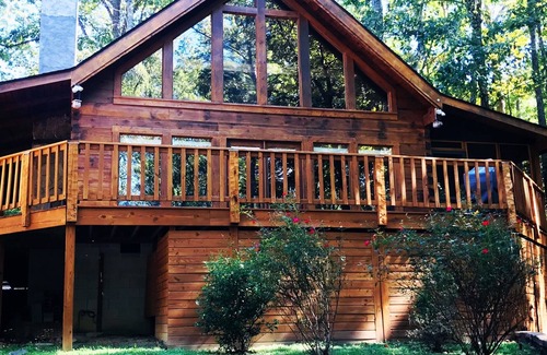 Enjoy an evening under the stars, relax on the screened in porch or sipping a glass of wine in the cool shade of hardwood trees overlooking the lake ... your private oasis awaits. Elegance in a relaxed lakefront setting best describes our log home tucked away on 1.3 acres of shaded bliss where you can get away from it all.