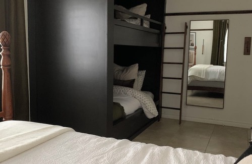 Experience Norco like a local in this 2-bedroom house. Nestled in a peaceful neighborhood, this custom designed property features a family style bunk room with a queen and 3 twin beds, as well as a single bedroom with one queen bed, perfect for a small group of guests. Enjoy the cozy living room with an optional air queen bed for extra comfort. With amenities like AC, WiFi, and a fitness room, your stay will be nothing short of perfect. There is also a pool onsite. We will need prior notice to put net on pool if needed. Please message us ahead of time to prepare otherwise net will remain off of pool. No lifeguard is available or on site. We'll be available to answer any questions while you stay at our place.