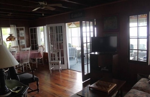 Camelot has a full kitchen, outdoor grill area, large dining table, living room with futon, a large deck that stretches from the cottage to the bluff. Upstairs are two bedrooms with full-sized beds and a front bedroom which includes a set of bunk-beds, two more full-sized beds and single. There is an additional single bed and pull out futon on the main floor. A full bathroom is on the main floor as well. Front screened porch with a swing for good napping and watching the waves.