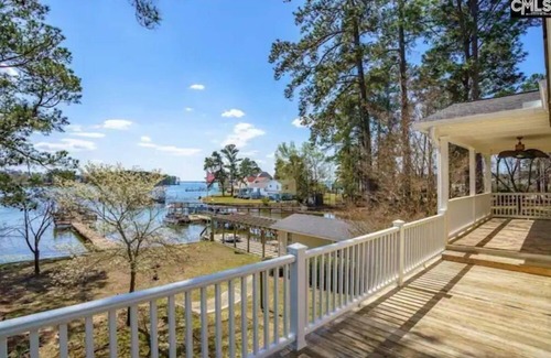 Beautiful Lake Murray home that sleeps up to 16 people. Outdoor relaxing and entertaining areas abound with the beautiful deck, dock, and views. Guests will have access paddle boat, life jackets and play area. Upper deck has an intimate sofa lounger. Outdoor seating and grill. Bring your boat or rent one across the channel at the Lake Murray Marina. The home also has a fully equipped kitchen. Less than 30 minutes from downtown, the zoo, trampoline park and shopping mall.