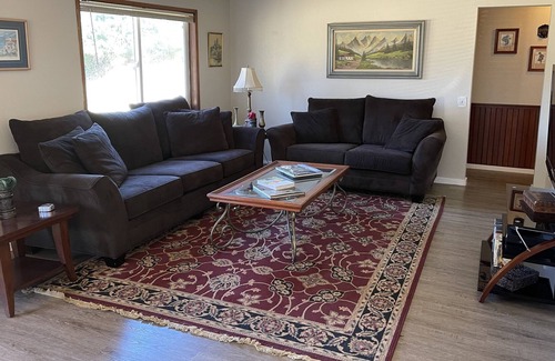 Our private guesthouse was originally built in 1910 as the homestead house for our mountain. The home was enlarged with modern conveniences many years ago. Five years ago we updated the interior and exterior. It’s a charming two bed/one bath that can accommodate 6 people comfortably. The house sits at the very top of our mountain at 1500’ elevation and yet only 20 minutes to downtown Eugene and the University of Oregon. The coast is just over an hours drive and even closer are numerous wineries, hiking trails and abundant waterfalls. The only thing you’ll hear is wildlife while relaxing on the porch or taking a stroll to the pond and meadow.