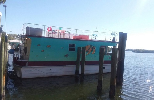 NO Comparison to this.... houseboat for rent at your own private docking on the bay with Gulf access. Fully contained two bedroom with all amenities even duct in air conditioning and two bathrooms! Come experience a liveaboard opportunity. Available also for rent on site are jet skis, kayaks, paddle boards, pontoon and bikes. Additionally a golf cart for touring the key. Walking distance to the well-known Casey Key Fish House Restaurant and Tiki Bar. 4 miles south of Sarasota and 5 miles north of Venice in the perfect private get away from the busy traffic. Nokomis beach and Siesta Key beach are within 6 miles. The vessel is docked at your own private sandy beach oasis with hammocks, private relaxing areas and a fire pit. The area is well lit at night with choices of large overhead spot lighting or warm glowing globe lights twinkling overhead. Free yoga is available right on the beach down the street 6 days a week and drumming on the beach 2 days a week.