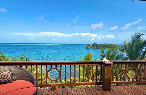 Relax & unwind at this charming beachfront haven that offers unrivaled snorkeling and marine life right in your front yard—at Cow and Calf, the most popular east end snorkel spot. Swim alongside sea turtles, stingrays, dolphins, and a kaleidoscope of tropical fish in crystal-clear waters. Whether you prefer to have the fresh catch of the day delivered straight to your dock each morning or hunt for your own dinner just steps from your dock, this is an ocean lover’s dream escape! Escape to your own private slice of paradise on the unspoiled east side of Roatan. Perched above the turquoise Caribbean Sea, this tranquil retreat offers stunning panoramic ocean views, world-class snorkeling right in the front yard, and the perfect blend of comfort and island charm.