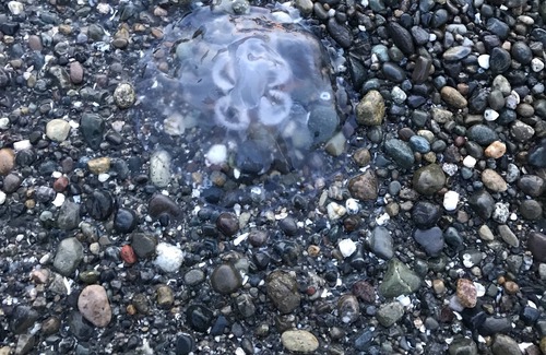 Cozy 2 bedroom cabin with waterviews. Sleeps 6, BBQ on site, Internet, fire pit, kayaks, paddle board and large yard for fun! Access to beaches and parks on the island. Perfect romantic getaway or family trip! Flat screen TV in living room and master bedroom. Bunk beds in second bedroom with full bottom bunk. Vintage trailer available on site for additional sleeping area! Nature surrounds you with deer that will walk right up to you!