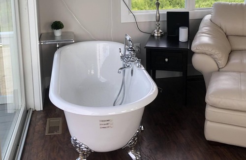 The sunset and sunrise views are unparalleled. Relax and enjoy the amazing views of the White Mountains, Pine River Pond and surrounding lakes & mountains. Sit on the deck and enjoy the sun all day surrounded by 315 private acres on a mountain top. Our Solar Powered, off grid, sparkling home has 2 bedrooms, 2 baths and is situated to enjoy views out all windows. The light and bright living room boast a working, claw foot tub overlooking the lakes and mountains! The airy kitchen has a massive granite island/table and a Wolf gas stove and Sub-Zero refrigerator. A marble, oversized shower is located upstairs and a half bath downstairs. There is also a 100-yard golf hole with putting green. Truly a one of a kind property. If you would like some peace and quiet, but conveniently located off of Route 16, (White Mountain Highway) this is the place for you. 15 minutes to Wolfeboro, NH, 40 minutes to North Conway, NH, 50 minutes to Portsmouth, NH, 45 minutes to the coast of Maine, 55 minutes to Portland, ME and under 2 hours to Boston, MA. Province Lake Golf Course, an 18 hole course with a restaurant and bar, is only 10 minutes away.