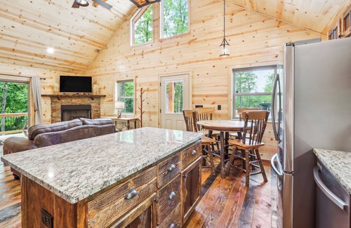 CABIN FEATURES: Smart TVs, cable channels, dining table, breakfast bar, gas fireplace